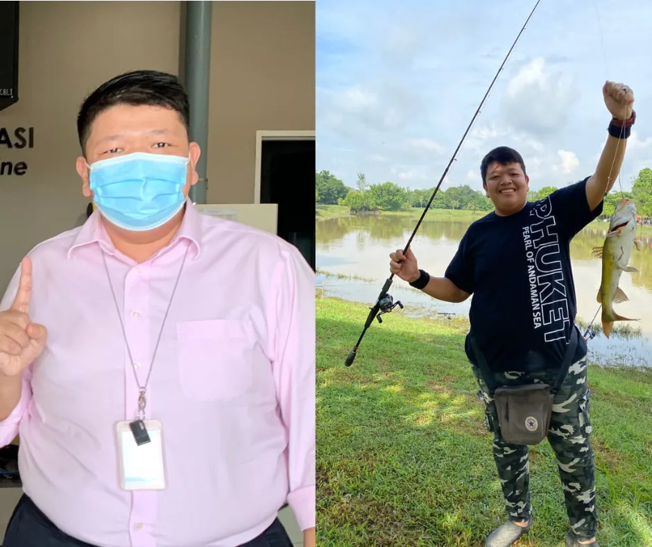 Aiman Amrin, berkongsi realiti pahit apabila berat badannya pernah mencecah 122 kilogram, sebelum berjaya diturunkan kepada 72 kilogram kini — satu perubahan besar yang didorong sepenuhnya oleh keinginan untuk kembali sihat.