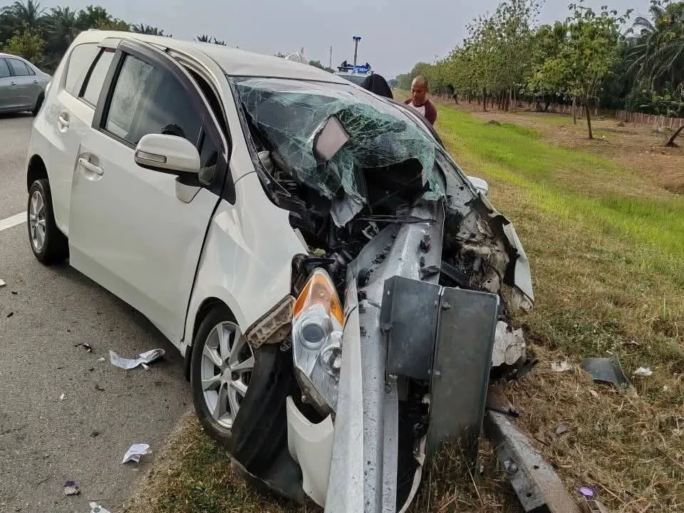 Ketua Polis Daerah Tangkak, Superintenden Roslan Mohd Talib berkata, nahas berlaku apabila MPV jenis Perodua Alza dipandu wanita yang juga isteri mangsa berusia 41 tahun dilaporkan hilang kawalan lalu merempuh besi penghadang di sebelah kiri lebuh raya.