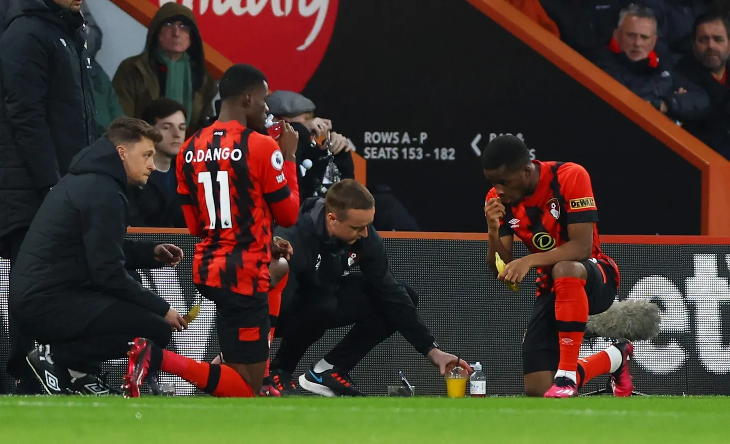 Detik bersejarah itu pertama kali disaksikan dalam perlawanan antara Leicester City menentang Crystal Palace pada April 2021. Perlawanan tersebut dihentikan ketika sepakan gol kira-kira selepas setengah jam permainan bagi membolehkan Wesley Fofana (Leicester) dan Cheikhou Kouyate (Palace) mengambil minuman dan gel tenaga.