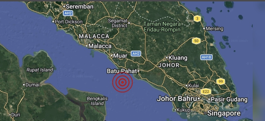 GEMPA bumi lemah dengan kekuatan 3.2 magnitud berlaku di perairan Batu Pahat hari ini.