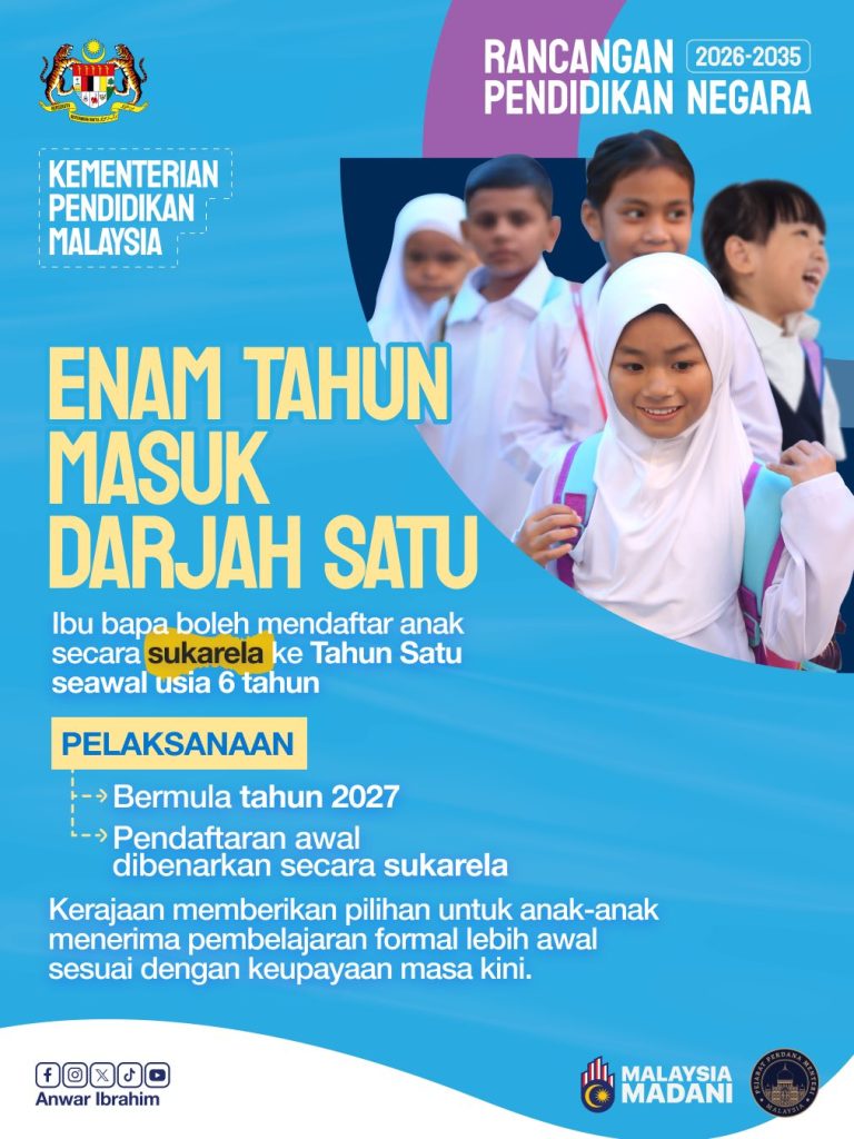 Terdahulu ketika pelancaran RPN 2026-2035, Perdana Menteri Datuk Seri Anwar Ibrahim mengumumkan bermula 2027, kanak-kanak yang berusia enam tahun boleh mengikuti pembelajaran tahun satu, namun ia tidak wajib dan bergantung kepada ibu bapa.