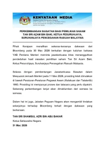 KERAJAAN hari ini menafikan laporan Bloomberg yang mendakwa Perdana Menteri, Datuk Seri Anwar Ibrahim mengarahkan satu jawatankuasa khas menangguhkan pendedahan hasil siasatan berhubung pemilikan saham Ketua Pesuruhjaya Suruhanjaya Pencegahan Rasuah Malaysia (SPRM), Tan Sri Azam Baki.