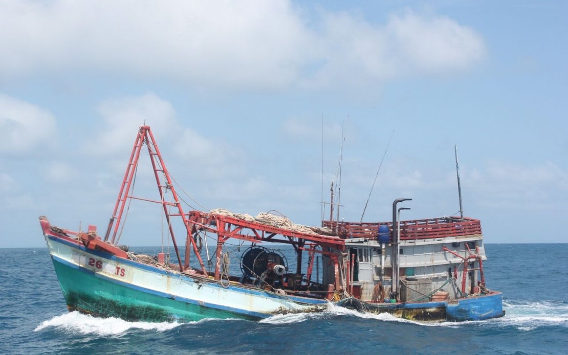 Pengarah Maritim Malaysia Terengganu, Kepten Maritim Hamiludin Che Awang berkata, kejadian berlaku kira-kira jam 12 tengah hari apabila bot pukat tunda dinaiki tiga kru termasuk tekong itu ditahan pada kedudukan kira-kira 144 batu nautika dari perairan Kuala Terengganu.