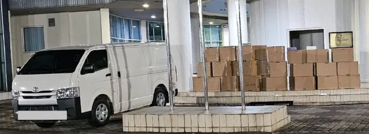 Turut ditahan dua lelaki berusia 24 dan 26 tahun yang memandu dua van berasingan dengan muatan kotak rokok.