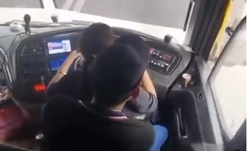 Dalam rakaman itu, wanita berkenaan dilihat turut memegang stereng ketika duduk di atas riba pemandu, walaupun bas sedang bergerak di lebuh raya.