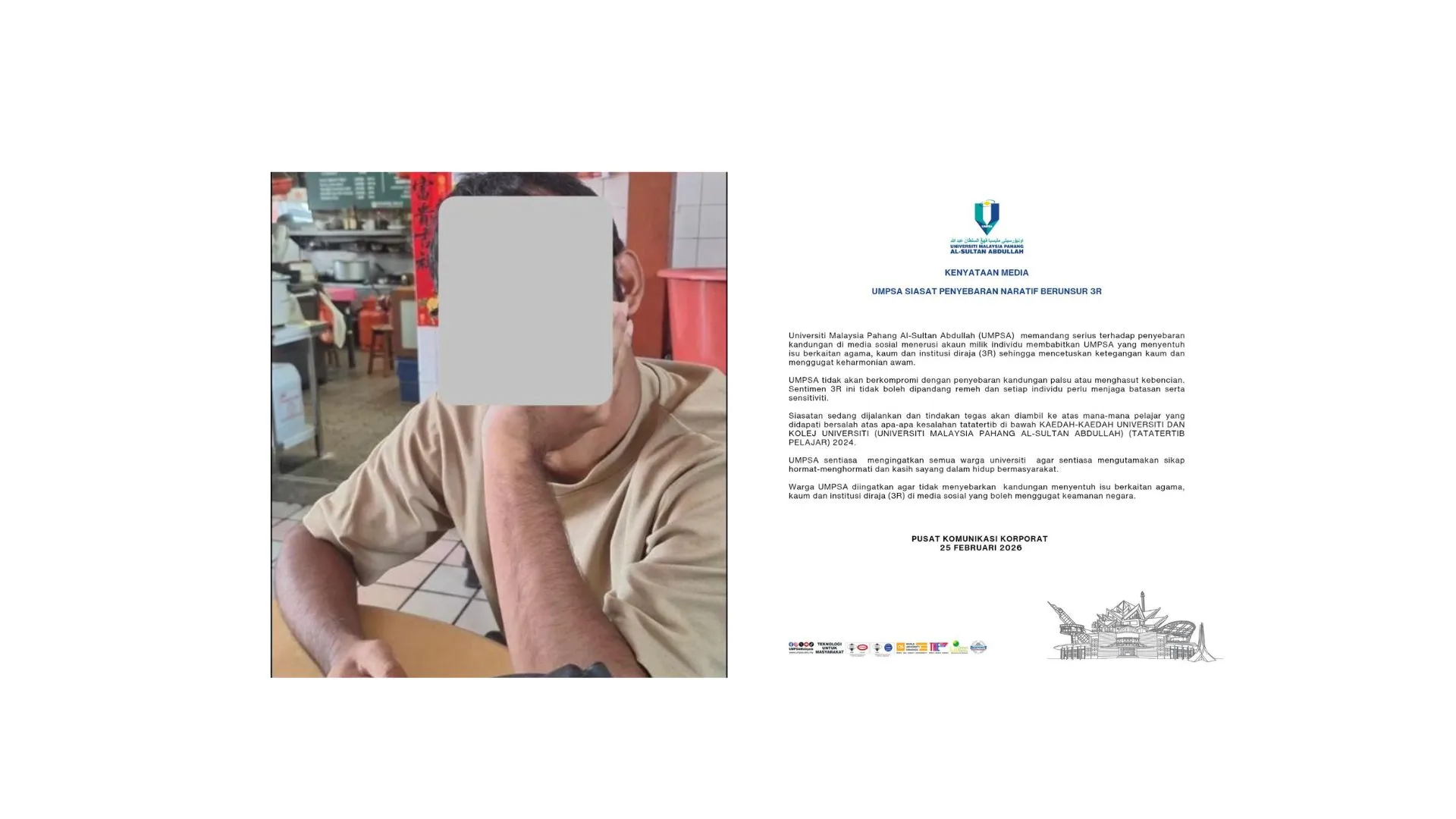 “Warga UMPSA diingatkan agar tidak menyebarkan kandungan menyentuh isu 3R di media sosial yang boleh menggugat keamanan negara,” katanya.