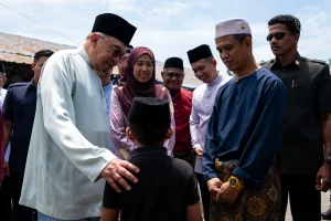 PERDANA Menteri, Datuk Seri Anwar Ibrahim menziarahi serta menyampaikan sumbangan kepada dua keluarga yang rumah mereka musnah dalam kebakaran di Jalan Nuri, Kampung Seri Cheeding, Banting hari ini. GAMBAR: Facebook Anwar Ibrahim