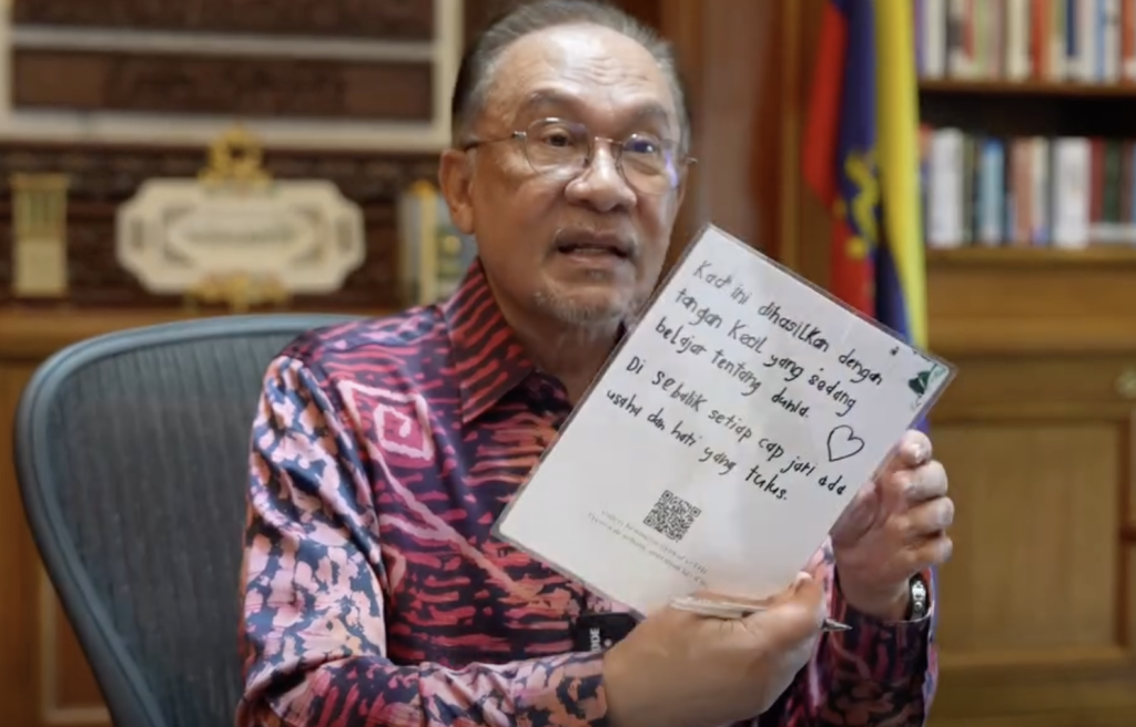 DATUK Seri Anwar Ibrahim berkata, beliau terharu apabila menerima kiriman kad ucapan Aidilfitri yang dihasilkan secara kreatif oleh rakyat Malaysia termasuk pelajar.