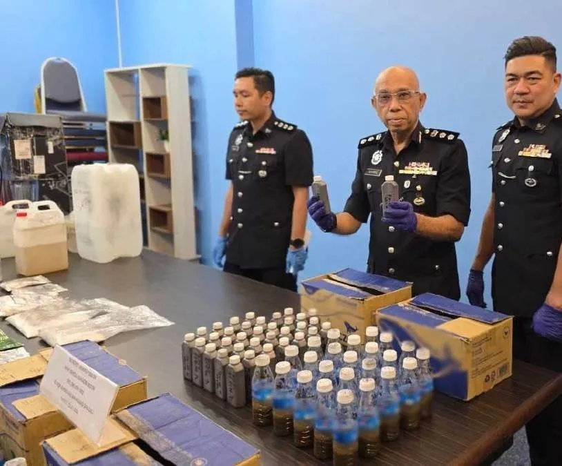 “Hasil pemeriksaan di dalam bilik tersebut telah menjumpai empat kotak mengandungi 95 botol cecair disyaki ubat batuk mengandungi kodeina dan satu paket plastik berisi dadah jenis methamphetamine seberat 53.79 gram (g),” katanya pada sidang media di Ibu Pejabat Polis Daerah (IPD) Sentul, hari ini, lapor Bernama.