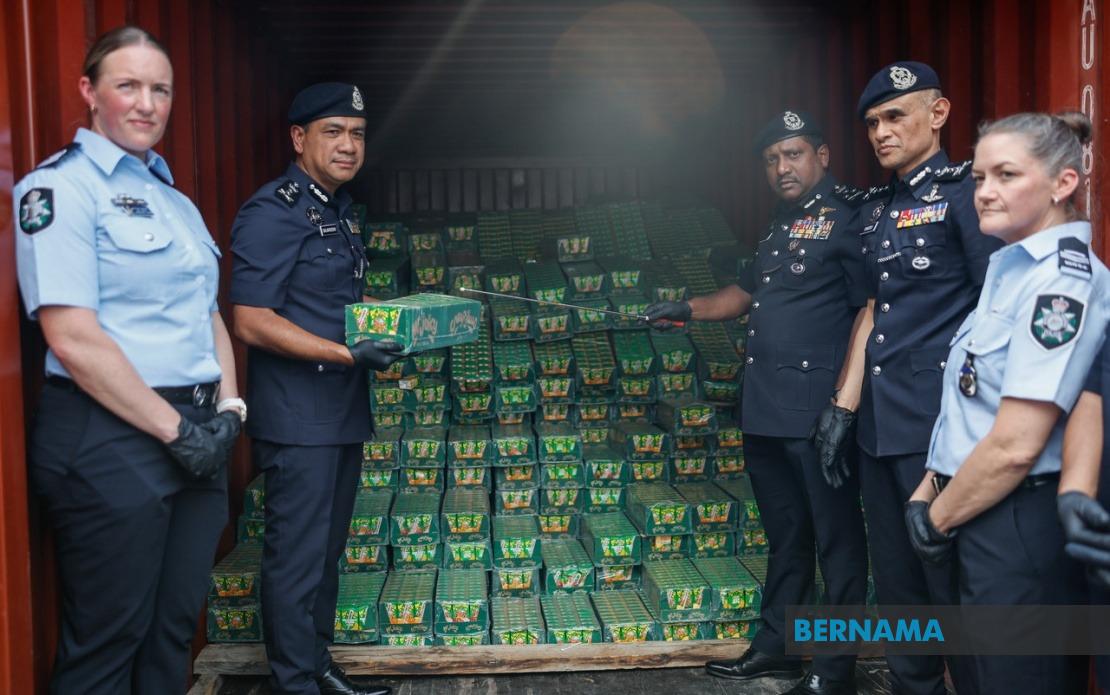 “Operasi dijalankan dengan kerjasama Australian Federal Police (AFP) dan JSJN Bukit Aman di bawah Joint Taskforce Tiger, yang menerima maklumat berhubung dua kontena kapal dari Timur Tengah yang transit di Pelabuhan Klang mengandungi bahan terlarang ini.