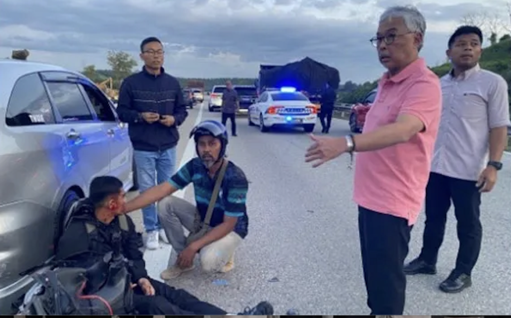 Semasa tiba di lokasi kejadian, baginda melihat kemalangan melibatkan sebuah motosikal dengan sebuah kereta.
