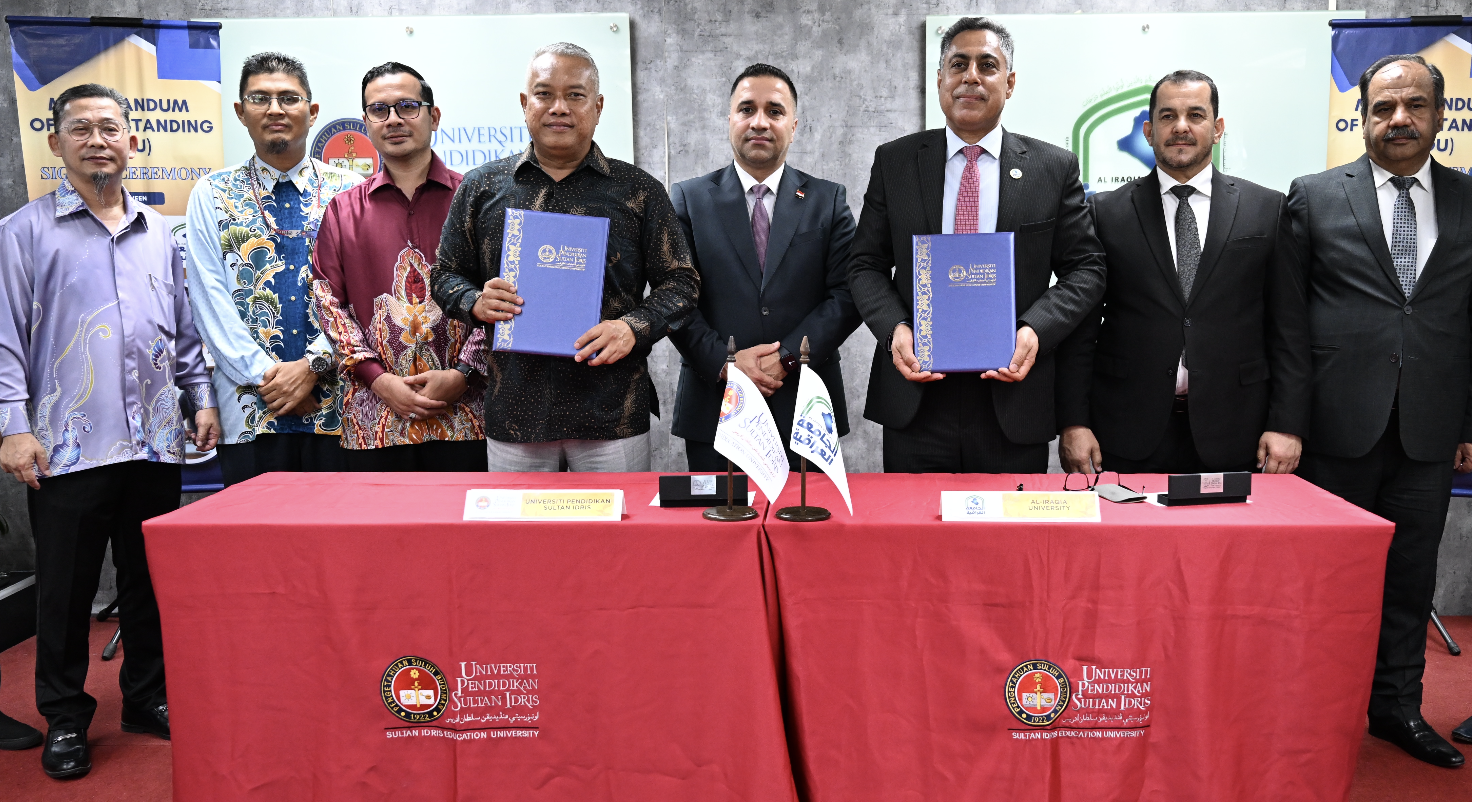 UNIVERSITI Pendidikan Sultan Idris (UPSI) hari ini memeterai Memorandum Persefahaman (MoU) dengan Al-Iraqia University sebagai langkah strategik memperkukuh kerjasama akademik, penyelidikan dan pembangunan pascasiswazah di peringkat antarabangsa.